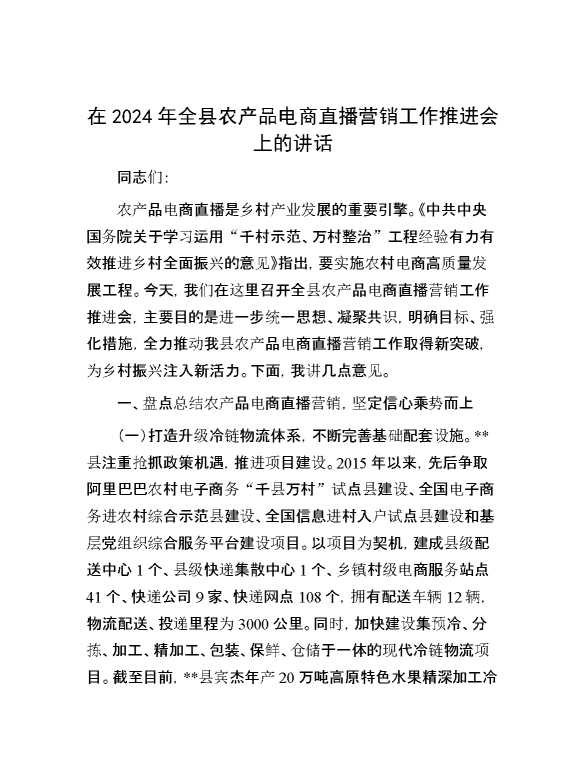在2024年全县农产品电商直播营销工作推进会上的讲话 2024-10-08 Word模板 98 购买前,请一定要先点击这里看看,欢迎持续关注,精彩模板每天推送 预览结束,本文件为word文档,一共14页,共6747字,请购买后,下载后查看 购买前,请一定要先点击这里看看,欢迎持续关注,精彩模板每天推送 资源下载下载价格29 RMBVIP免费升级VIP点击检测网盘有效后购买有任何充值和下载问题请加微信:xuexixuexi66 0 演讲发言