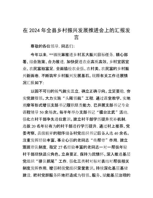 在2024年全县乡村振兴发展推进会上的汇报发言 2024-10-08 Word模板 93 购买前,请一定要先点击这里看看,欢迎持续关注,精彩模板每天推送 预览结束,本文件为word文档,一共4页,共1622字,请购买后,下载后查看 购买前,请一定要先点击这里看看,欢迎持续关注,精彩模板每天推送 资源下载下载价格29 RMBVIP免费升级VIP点击检测网盘有效后购买有任何充值和下载问题请加微信:xuexixuexi66 0 演讲发言