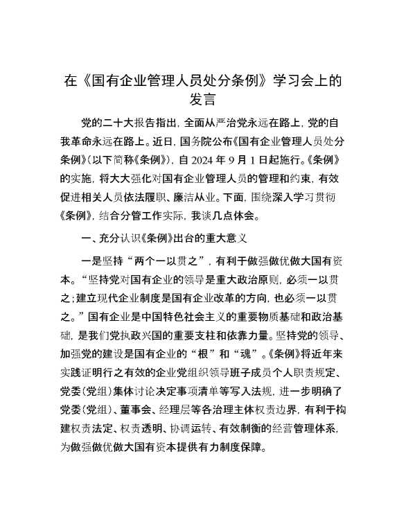 在《国有企业管理人员处分条例》学习会上的发言 2024-10-08 Word模板 99 购买前,请一定要先点击这里看看,欢迎持续关注,精彩模板每天推送 预览结束,本文件为word文档,一共6页,共2583字,请购买后,下载后查看 购买前,请一定要先点击这里看看,欢迎持续关注,精彩模板每天推送 资源下载下载价格29 RMBVIP免费升级VIP点击检测网盘有效后购买有任何充值和下载问题请加微信:xuexixuexi66 0 演讲发言