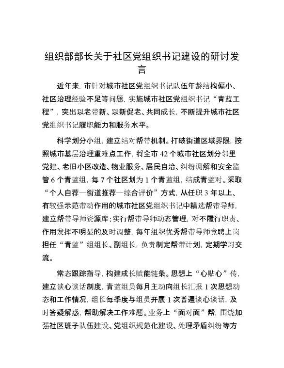 组织部部长关于社区党组织书记建设的研讨发言 2024-10-08 Word模板 96 购买前,请一定要先点击这里看看,欢迎持续关注,精彩模板每天推送 预览结束,本文件为word文档,一共2页,共838字,请购买后,下载后查看 购买前,请一定要先点击这里看看,欢迎持续关注,精彩模板每天推送 资源下载下载价格29 RMBVIP免费升级VIP点击检测网盘有效后购买有任何充值和下载问题请加微信:xuexixuexi66 0 演讲发言