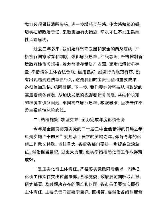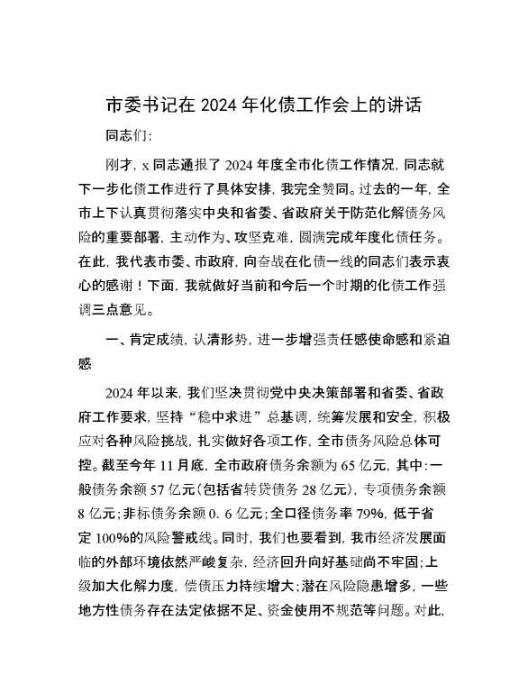市委书记在2024年化债工作会上的讲话 2024-10-08 Word模板 98 购买前,请一定要先点击这里看看,欢迎持续关注,精彩模板每天推送 预览结束,本文件为word文档,一共6页,共2740字,请购买后,下载后查看 购买前,请一定要先点击这里看看,欢迎持续关注,精彩模板每天推送 资源下载下载价格29 RMBVIP免费升级VIP点击检测网盘有效后购买有任何充值和下载问题请加微信:xuexixuexi66 0 演讲发言