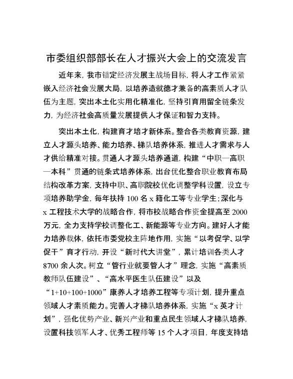 市委组织部部长在人才振兴大会上的交流发言 2024-10-08 Word模板 100 购买前,请一定要先点击这里看看,欢迎持续关注,精彩模板每天推送 预览结束,本文件为word文档,一共3页,共1410字,请购买后,下载后查看 购买前,请一定要先点击这里看看,欢迎持续关注,精彩模板每天推送 资源下载下载价格29 RMBVIP免费升级VIP点击检测网盘有效后购买有任何充值和下载问题请加微信:xuexixuexi66 0 演讲发言