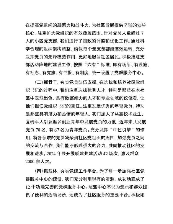 县委书记在全市社区基层党建工作会议上的交流发言 2024-10-08 Word模板 99 购买前,请一定要先点击这里看看,欢迎持续关注,精彩模板每天推送 预览结束,本文件为word文档,一共5页,共2445字,请购买后,下载后查看 购买前,请一定要先点击这里看看,欢迎持续关注,精彩模板每天推送 资源下载下载价格29 RMBVIP免费升级VIP点击检测网盘有效后购买有任何充值和下载问题请加微信:xuexixuexi66 0 演讲发言