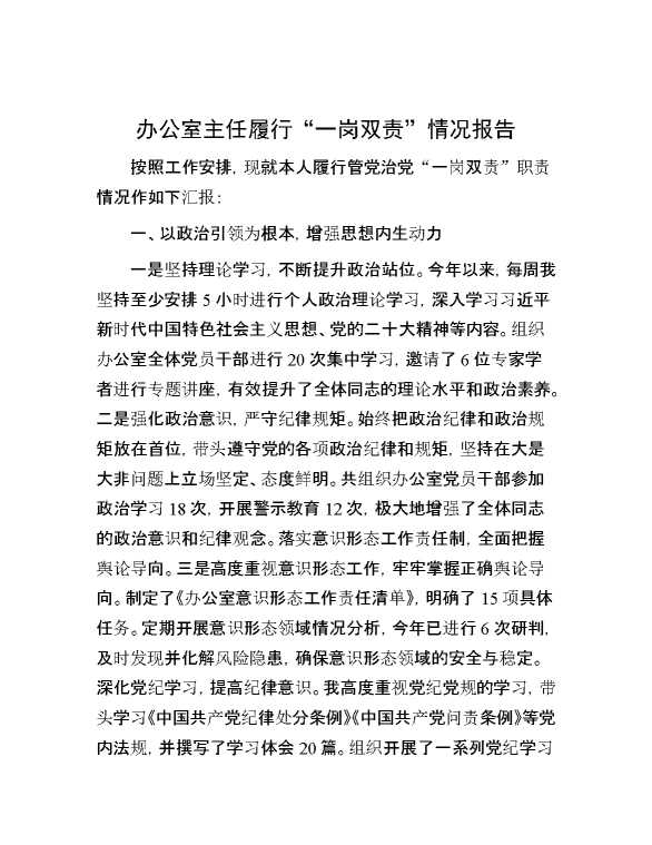 办公室主任履行“一岗双责”情况报告 2024-10-08 Word模板 66 购买前,请一定要先点击这里看看,欢迎持续关注,精彩模板每天推送 预览结束,本文件为word文档,一共6页,共2882字,请购买后,下载后查看 购买前,请一定要先点击这里看看,欢迎持续关注,精彩模板每天推送 资源下载下载价格29 RMBVIP免费升级VIP点击检测网盘有效后购买有任何充值和下载问题请加微信:xuexixuexi66 0 总结汇报