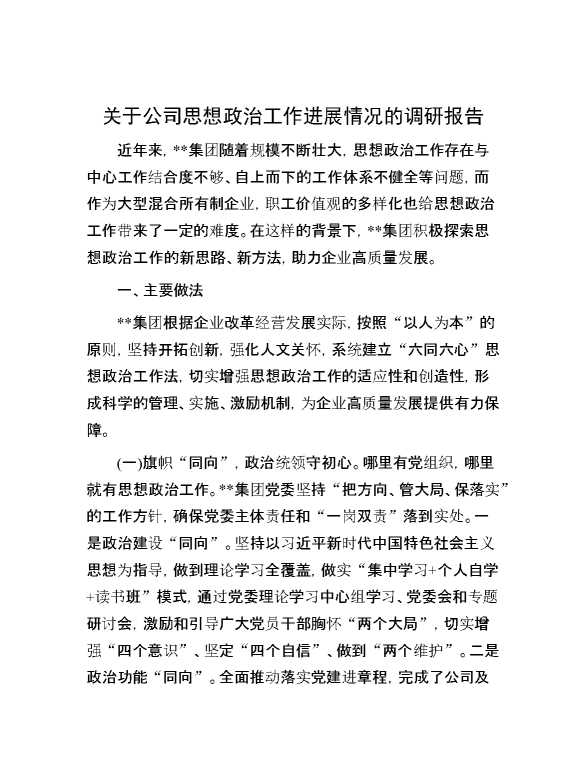 关于公司思想政治工作进展情况的调研报告 2024-10-08 Word模板 67 购买前,请一定要先点击这里看看,欢迎持续关注,精彩模板每天推送 预览结束,本文件为word文档,一共8页,共3657字,请购买后,下载后查看 购买前,请一定要先点击这里看看,欢迎持续关注,精彩模板每天推送 资源下载下载价格29 RMBVIP免费升级VIP点击检测网盘有效后购买有任何充值和下载问题请加微信:xuexixuexi66 0 总结汇报