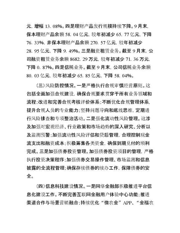 金融企业2024年第三季度经济运行分析报告 2024-10-08 Word模板 74 购买前,请一定要先点击这里看看,欢迎持续关注,精彩模板每天推送 预览结束,本文件为word文档,一共5页,共2238字,请购买后,下载后查看 购买前,请一定要先点击这里看看,欢迎持续关注,精彩模板每天推送 资源下载下载价格29 RMBVIP免费升级VIP点击检测网盘有效后购买有任何充值和下载问题请加微信:xuexixuexi66 0 总结汇报