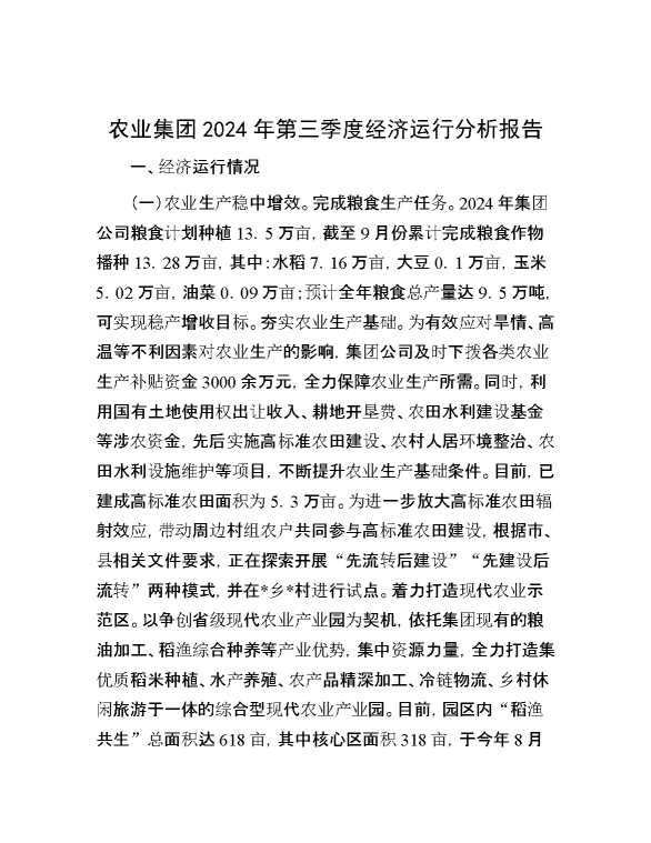 农业集团2024年第三季度经济运行分析报告 2024-10-08 Word模板 67 购买前,请一定要先点击这里看看,欢迎持续关注,精彩模板每天推送 预览结束,本文件为word文档,一共6页,共3050字,请购买后,下载后查看 购买前,请一定要先点击这里看看,欢迎持续关注,精彩模板每天推送 资源下载下载价格29 RMBVIP免费升级VIP点击检测网盘有效后购买有任何充值和下载问题请加微信:xuexixuexi66 0 总结汇报