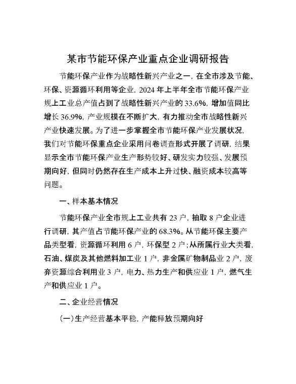 某市节能环保产业重点企业调研报告 2024-10-08 Word模板 69 购买前,请一定要先点击这里看看,欢迎持续关注,精彩模板每天推送 预览结束,本文件为word文档,一共4页,共1812字,请购买后,下载后查看 购买前,请一定要先点击这里看看,欢迎持续关注,精彩模板每天推送 资源下载下载价格29 RMBVIP免费升级VIP点击检测网盘有效后购买有任何充值和下载问题请加微信:xuexixuexi66 0 总结汇报