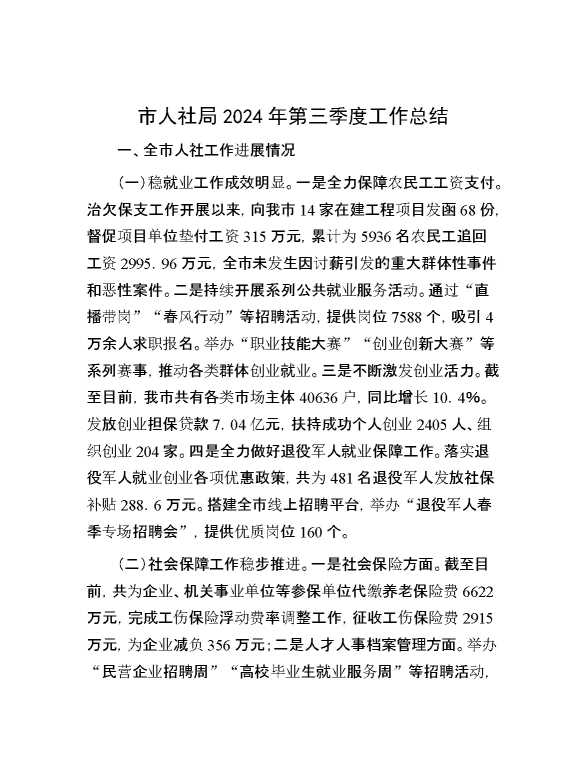 市人社局2024年第三季度工作总结 2024-10-08 Word模板 101 购买前,请一定要先点击这里看看,欢迎持续关注,精彩模板每天推送 预览结束,本文件为word文档,一共5页,共2469字,请购买后,下载后查看 购买前,请一定要先点击这里看看,欢迎持续关注,精彩模板每天推送 资源下载下载价格29 RMBVIP免费升级VIP点击检测网盘有效后购买有任何充值和下载问题请加微信:xuexixuexi66 0 总结汇报