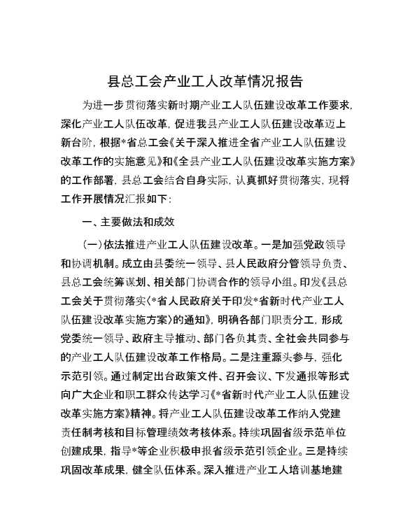 县总工会产业工人改革情况报告 2024-10-08 Word模板 94 购买前,请一定要先点击这里看看,欢迎持续关注,精彩模板每天推送 预览结束,本文件为word文档,一共4页,共2031字,请购买后,下载后查看 购买前,请一定要先点击这里看看,欢迎持续关注,精彩模板每天推送 资源下载下载价格29 RMBVIP免费升级VIP点击检测网盘有效后购买有任何充值和下载问题请加微信:xuexixuexi66 0 总结汇报