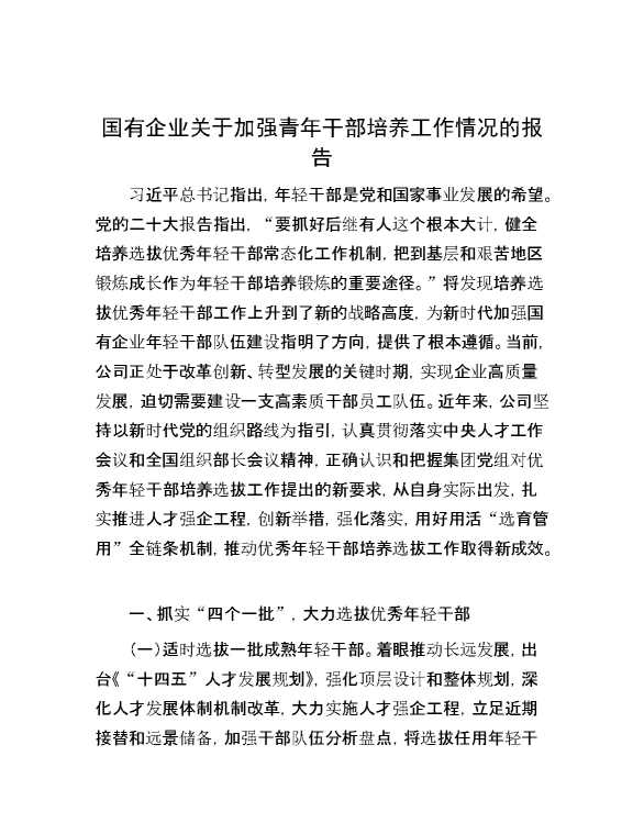 国有企业关于加强青年干部培养工作情况的报告 2024-10-08 Word模板 98 购买前,请一定要先点击这里看看,欢迎持续关注,精彩模板每天推送 预览结束,本文件为word文档,一共8页,共3975字,请购买后,下载后查看 购买前,请一定要先点击这里看看,欢迎持续关注,精彩模板每天推送 资源下载下载价格29 RMBVIP免费升级VIP点击检测网盘有效后购买有任何充值和下载问题请加微信:xuexixuexi66 0 总结汇报