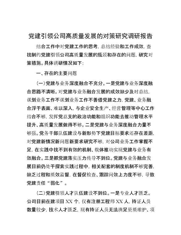 党建引领公司高质量发展的对策研究调研报告 2024-10-08 Word模板 87 购买前,请一定要先点击这里看看,欢迎持续关注,精彩模板每天推送 预览结束,本文件为word文档,一共8页,共3611字,请购买后,下载后查看 购买前,请一定要先点击这里看看,欢迎持续关注,精彩模板每天推送 资源下载下载价格29 RMBVIP免费升级VIP点击检测网盘有效后购买有任何充值和下载问题请加微信:xuexixuexi66 0 总结汇报