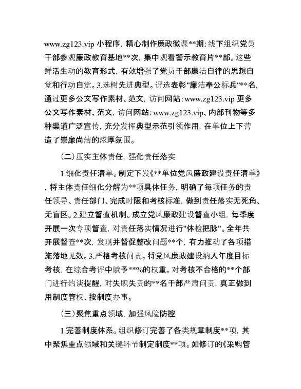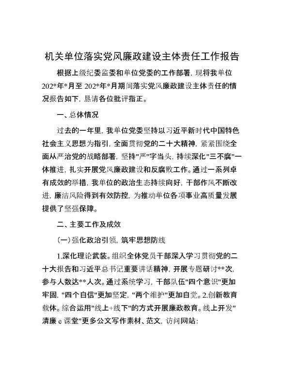 机关单位落实党风廉政建设主体责任工作报告 2024-10-08 Word模板 99 购买前,请一定要先点击这里看看,欢迎持续关注,精彩模板每天推送 预览结束,本文件为word文档,一共6页,共2471字,请购买后,下载后查看 购买前,请一定要先点击这里看看,欢迎持续关注,精彩模板每天推送 资源下载下载价格29 RMBVIP免费升级VIP点击检测网盘有效后购买有任何充值和下载问题请加微信:xuexixuexi66 0 总结汇报