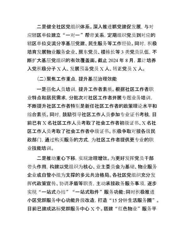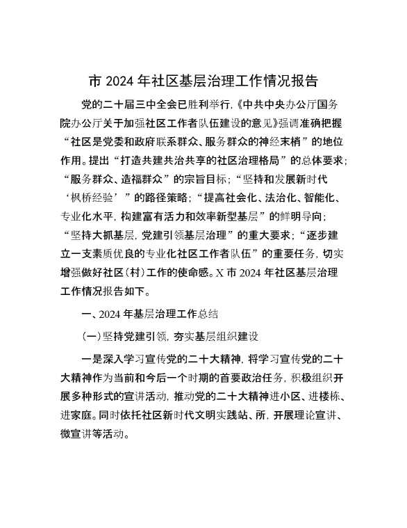 市2024年社区基层治理工作情况报告 2024-10-08 Word模板 111 购买前,请一定要先点击这里看看,欢迎持续关注,精彩模板每天推送 预览结束,本文件为word文档,一共8页,共3814字,请购买后,下载后查看 购买前,请一定要先点击这里看看,欢迎持续关注,精彩模板每天推送 资源下载下载价格29 RMBVIP免费升级VIP点击检测网盘有效后购买有任何充值和下载问题请加微信:xuexixuexi66 0 总结汇报