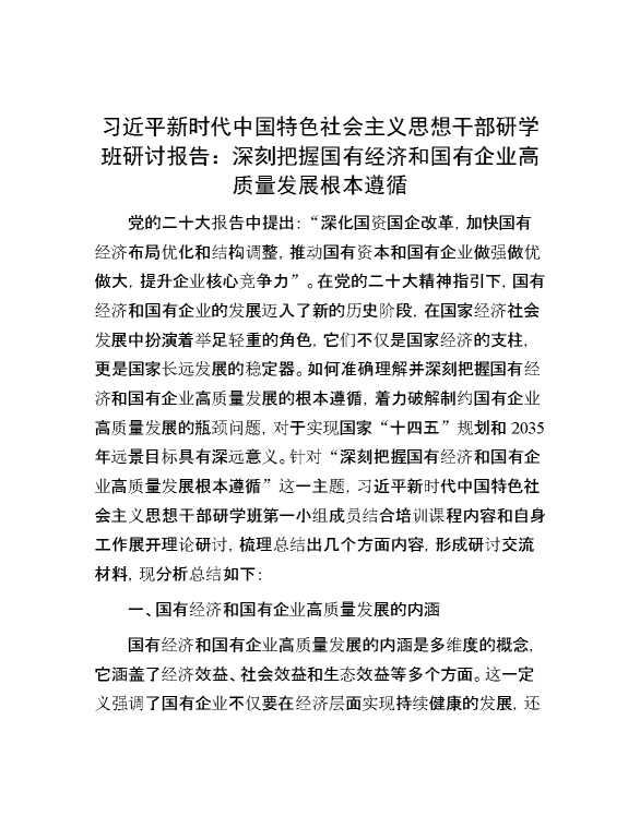 习近平新时代中国特色社会主义思想干部研学班研讨报告:深刻把握国有经济和国有企业高质量发展根本遵循 2024-10-10 Word模板 115 购买前,请一定要先点击这里看看,欢迎持续关注,精彩模板每天推送 预览结束,本文件为word文档,一共6页,共2455字,请购买后,下载后查看 购买前,请一定要先点击这里看看,欢迎持续关注,精彩模板每天推送 资源下载下载价格29 RMBVIP免费升级VIP点击检测网盘有效后购买有任何充值和下载问题请加微信:xuexixuexi66 0 总结汇报