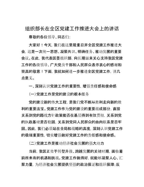 组织部长在全区党建工作推进大会上的讲话 2024-10-10 Word模板 120 购买前,请一定要先点击这里看看,欢迎持续关注,精彩模板每天推送 预览结束,本文件为word文档,一共6页,共2446字,请购买后,下载后查看 购买前,请一定要先点击这里看看,欢迎持续关注,精彩模板每天推送 资源下载下载价格29 RMBVIP免费升级VIP点击检测网盘有效后购买有任何充值和下载问题请加微信:xuexixuexi66 0 演讲发言