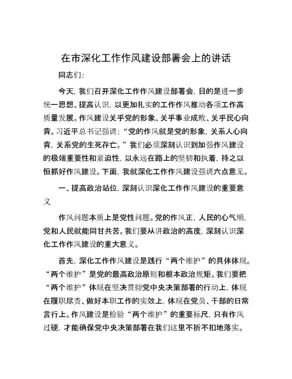 在市深化工作作风建设部署会上的讲话 2024-10-10 Word模板 86 购买前,请一定要先点击这里看看,欢迎持续关注,精彩模板每天推送 预览结束,本文件为word文档,一共6页,共2665字,请购买后,下载后查看 购买前,请一定要先点击这里看看,欢迎持续关注,精彩模板每天推送 资源下载下载价格29 RMBVIP免费升级VIP点击检测网盘有效后购买有任何充值和下载问题请加微信:xuexixuexi66 0 演讲发言