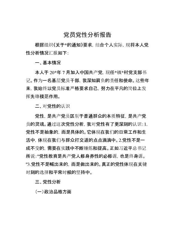 党员党性分析报告 2024-10-10 Word模板 94 购买前,请一定要先点击这里看看,欢迎持续关注,精彩模板每天推送 预览结束,本文件为word文档,一共4页,共1345字,请购买后,下载后查看 购买前,请一定要先点击这里看看,欢迎持续关注,精彩模板每天推送 资源下载下载价格29 RMBVIP免费升级VIP点击检测网盘有效后购买有任何充值和下载问题请加微信:xuexixuexi66 0 总结汇报