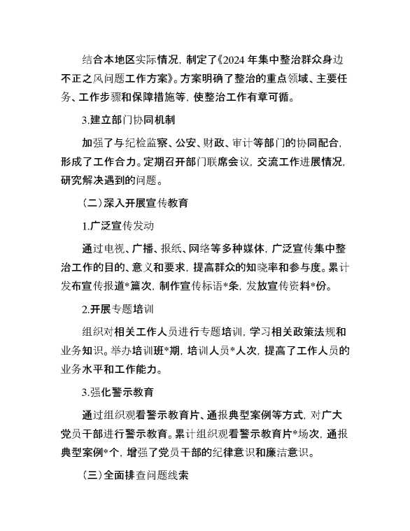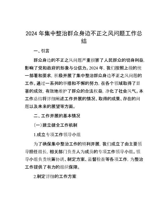 2024 年集中整治群众身边不正之风问题工作总结 2024-10-10 Word模板 129 购买前,请一定要先点击这里看看,欢迎持续关注,精彩模板每天推送 预览结束,本文件为word文档,一共8页,共2798字,请购买后,下载后查看 购买前,请一定要先点击这里看看,欢迎持续关注,精彩模板每天推送 资源下载下载价格29 RMBVIP免费升级VIP点击检测网盘有效后购买有任何充值和下载问题请加微信:xuexixuexi66 0 总结汇报