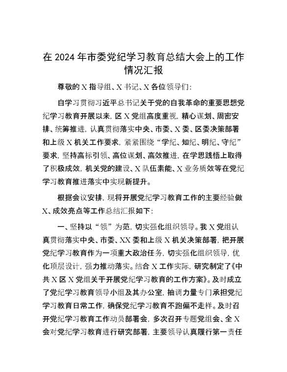 在2024年市委党纪学习教育总结大会上的工作情况汇报 2024-10-10 Word模板 125 购买前,请一定要先点击这里看看,欢迎持续关注,精彩模板每天推送 预览结束,本文件为word文档,一共5页,共2401字,请购买后,下载后查看 购买前,请一定要先点击这里看看,欢迎持续关注,精彩模板每天推送 资源下载下载价格29 RMBVIP免费升级VIP点击检测网盘有效后购买有任何充值和下载问题请加微信:xuexixuexi66 0 总结汇报