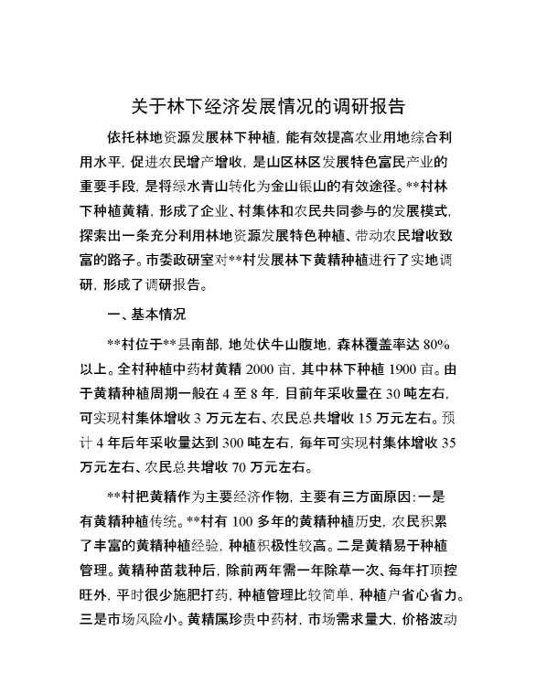关于林下经济发展情况的调研报告 2024-10-12 Word模板 91 购买前,请一定要先点击这里看看,欢迎持续关注,精彩模板每天推送 预览结束,本文件为word文档,一共8页,共3851字,请购买后,下载后查看 购买前,请一定要先点击这里看看,欢迎持续关注,精彩模板每天推送 资源下载下载价格29 RMBVIP免费升级VIP点击检测网盘有效后购买有任何充值和下载问题请加微信:xuexixuexi66 0 总结汇报