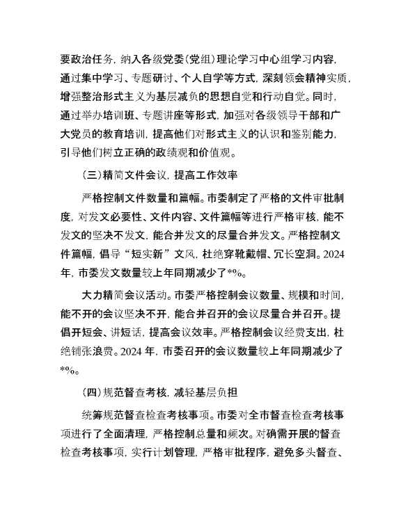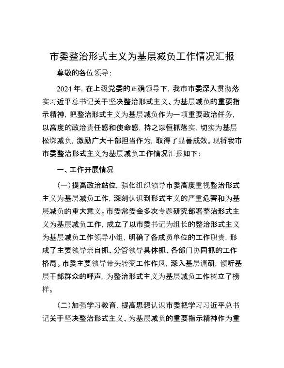 市委整治形式主义为基层减负工作情况汇报 2024-10-12 Word模板 92 购买前,请一定要先点击这里看看,欢迎持续关注,精彩模板每天推送 预览结束,本文件为word文档,一共6页,共2568字,请购买后,下载后查看 购买前,请一定要先点击这里看看,欢迎持续关注,精彩模板每天推送 资源下载下载价格29 RMBVIP免费升级VIP点击检测网盘有效后购买有任何充值和下载问题请加微信:xuexixuexi66 0 总结汇报