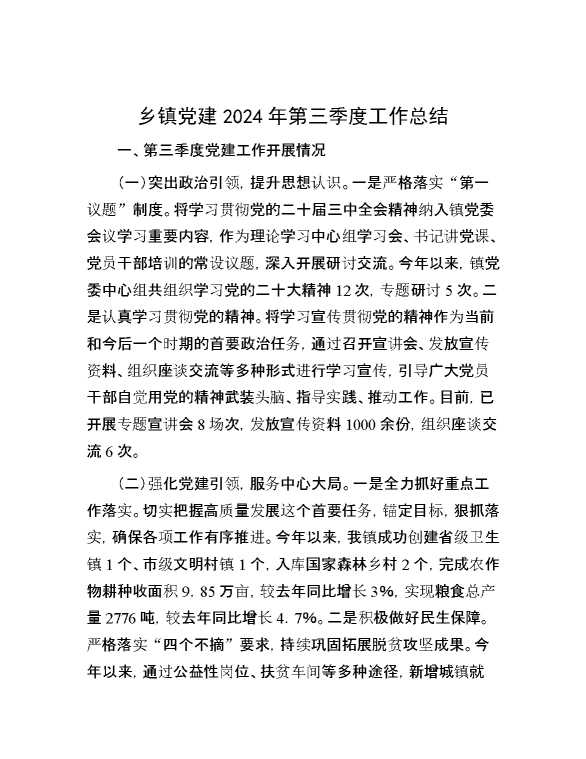 乡镇党建2024年第三季度工作总结 2024-10-12 Word模板 93 购买前,请一定要先点击这里看看,欢迎持续关注,精彩模板每天推送 预览结束,本文件为word文档,一共7页,共3151字,请购买后,下载后查看 购买前,请一定要先点击这里看看,欢迎持续关注,精彩模板每天推送 资源下载下载价格29 RMBVIP免费升级VIP点击检测网盘有效后购买有任何充值和下载问题请加微信:xuexixuexi66 0 总结汇报