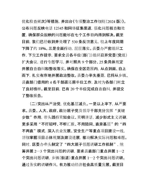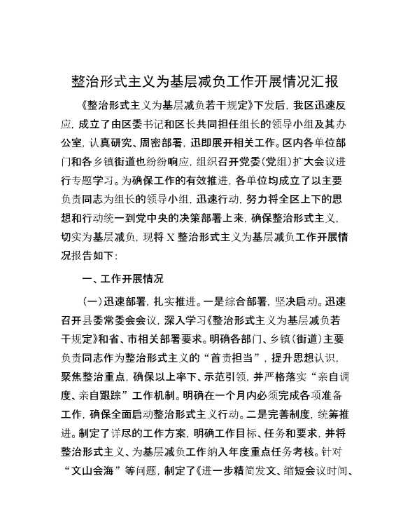 整治形式主义为基层减负工作开展情况汇报 2024-10-12 Word模板 115 购买前,请一定要先点击这里看看,欢迎持续关注,精彩模板每天推送 预览结束,本文件为word文档,一共5页,共2256字,请购买后,下载后查看 购买前,请一定要先点击这里看看,欢迎持续关注,精彩模板每天推送 资源下载下载价格29 RMBVIP免费升级VIP点击检测网盘有效后购买有任何充值和下载问题请加微信:xuexixuexi66 0 总结汇报