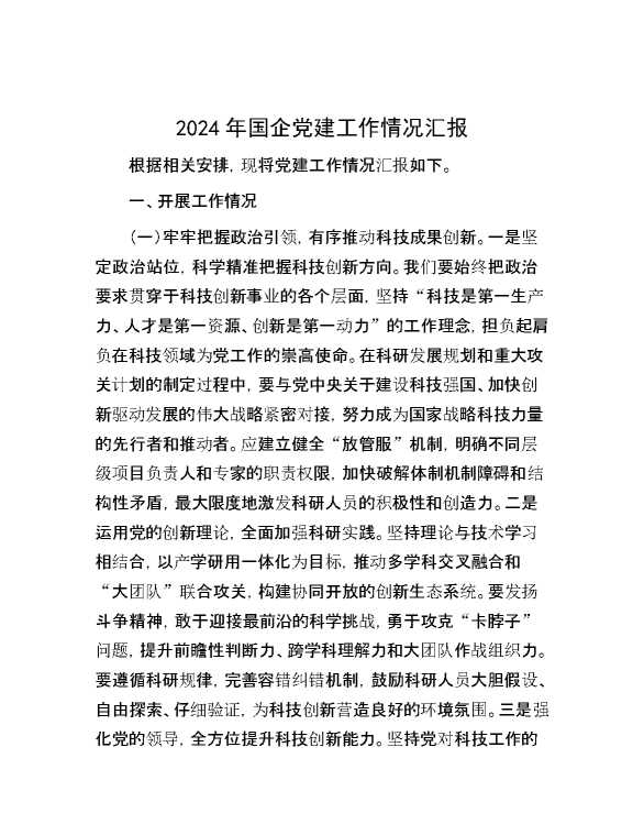2024年国企党建工作情况汇报 2024-10-12 Word模板 90 购买前,请一定要先点击这里看看,欢迎持续关注,精彩模板每天推送 预览结束,本文件为word文档,一共4页,共1709字,请购买后,下载后查看 购买前,请一定要先点击这里看看,欢迎持续关注,精彩模板每天推送 资源下载下载价格29 RMBVIP免费升级VIP点击检测网盘有效后购买有任何充值和下载问题请加微信:xuexixuexi66 0 总结汇报
