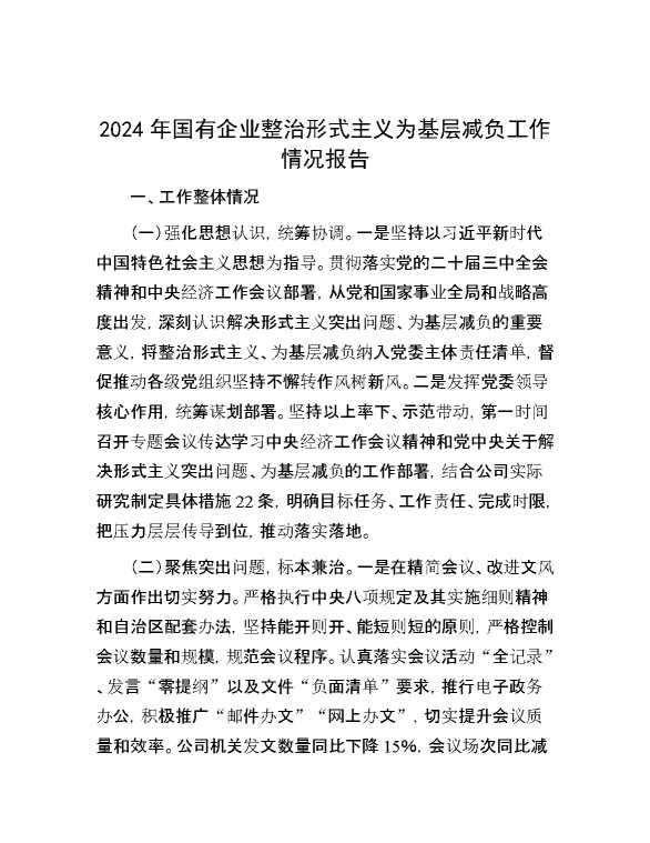 2024年国有企业整治形式主义为基层减负工作情况报告 2024-10-12 Word模板 89 购买前,请一定要先点击这里看看,欢迎持续关注,精彩模板每天推送 预览结束,本文件为word文档,一共4页,共1926字,请购买后,下载后查看 购买前,请一定要先点击这里看看,欢迎持续关注,精彩模板每天推送 资源下载下载价格29 RMBVIP免费升级VIP点击检测网盘有效后购买有任何充值和下载问题请加微信:xuexixuexi66 0 总结汇报