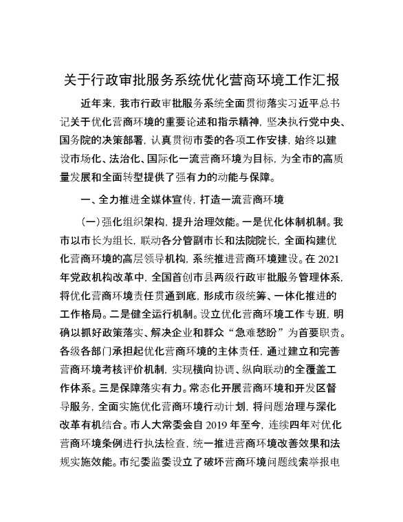 关于行政审批服务系统优化营商环境工作汇报 2024-10-12 Word模板 97 购买前,请一定要先点击这里看看,欢迎持续关注,精彩模板每天推送 预览结束,本文件为word文档,一共10页,共4802字,请购买后,下载后查看 购买前,请一定要先点击这里看看,欢迎持续关注,精彩模板每天推送 资源下载下载价格29 RMBVIP免费升级VIP点击检测网盘有效后购买有任何充值和下载问题请加微信:xuexixuexi66 0 总结汇报