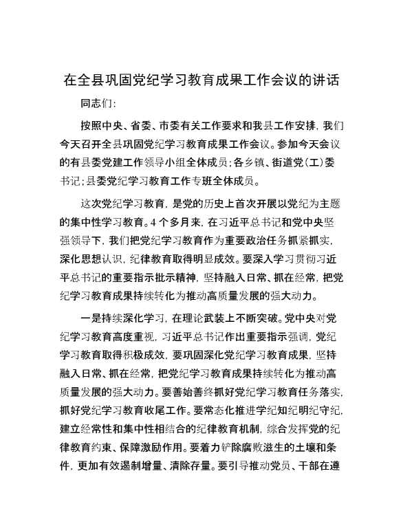 在全县巩固党纪学习教育成果工作会议的讲话 2024-10-12 Word模板 100 购买前,请一定要先点击这里看看,欢迎持续关注,精彩模板每天推送 预览结束,本文件为word文档,一共4页,共1873字,请购买后,下载后查看 购买前,请一定要先点击这里看看,欢迎持续关注,精彩模板每天推送 资源下载下载价格29 RMBVIP免费升级VIP点击检测网盘有效后购买有任何充值和下载问题请加微信:xuexixuexi66 0 演讲发言