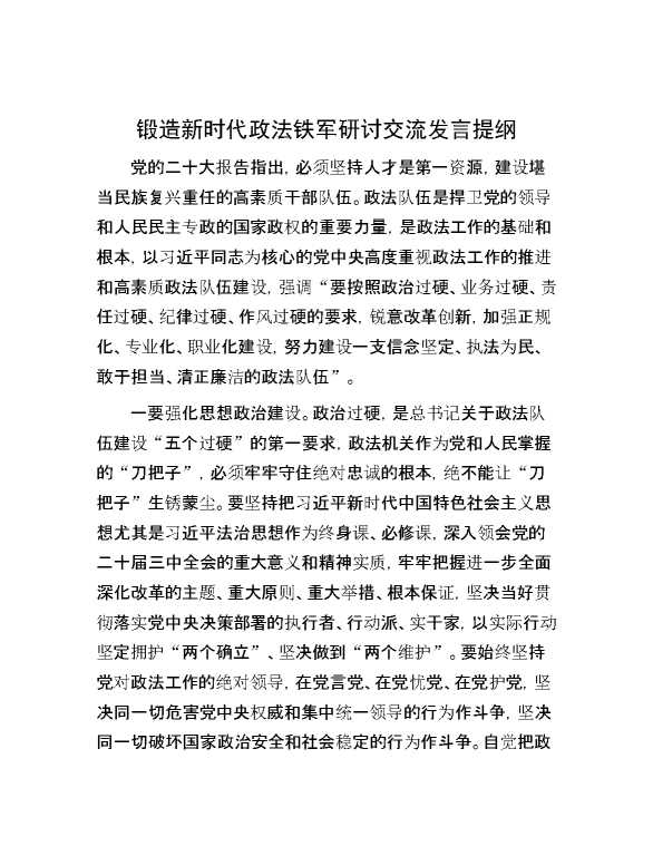 锻造新时代政法铁军研讨交流发言提纲 2024-10-12 Word模板 92 购买前,请一定要先点击这里看看,欢迎持续关注,精彩模板每天推送 预览结束,本文件为word文档,一共3页,共1288字,请购买后,下载后查看 购买前,请一定要先点击这里看看,欢迎持续关注,精彩模板每天推送 资源下载下载价格29 RMBVIP免费升级VIP点击检测网盘有效后购买有任何充值和下载问题请加微信:xuexixuexi66 0 演讲发言