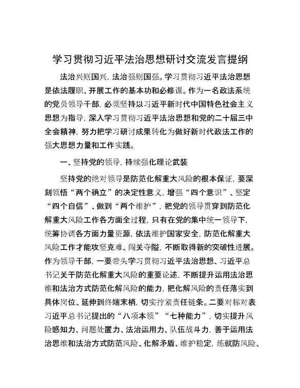 学习贯彻习近平法治思想研讨交流发言提纲 2024-10-12 Word模板 112 购买前,请一定要先点击这里看看,欢迎持续关注,精彩模板每天推送 预览结束,本文件为word文档,一共4页,共1782字,请购买后,下载后查看 购买前,请一定要先点击这里看看,欢迎持续关注,精彩模板每天推送 资源下载下载价格29 RMBVIP免费升级VIP点击检测网盘有效后购买有任何充值和下载问题请加微信:xuexixuexi66 0 演讲发言