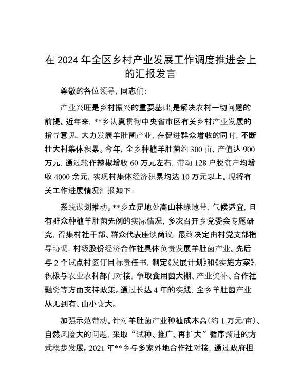 在2024年全区乡村产业发展工作调度推进会上的汇报发言 2024-10-12 Word模板 119 购买前,请一定要先点击这里看看,欢迎持续关注,精彩模板每天推送 预览结束,本文件为word文档,一共3页,共1242字,请购买后,下载后查看 购买前,请一定要先点击这里看看,欢迎持续关注,精彩模板每天推送 资源下载下载价格29 RMBVIP免费升级VIP点击检测网盘有效后购买有任何充值和下载问题请加微信:xuexixuexi66 0 演讲发言