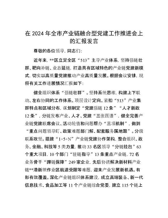 在2024年全市产业链融合型党建工作推进会上的汇报发言 2024-10-12 Word模板 89 购买前,请一定要先点击这里看看,欢迎持续关注,精彩模板每天推送 预览结束,本文件为word文档,一共3页,共1232字,请购买后,下载后查看 购买前,请一定要先点击这里看看,欢迎持续关注,精彩模板每天推送 资源下载下载价格29 RMBVIP免费升级VIP点击检测网盘有效后购买有任何充值和下载问题请加微信:xuexixuexi66 0 演讲发言