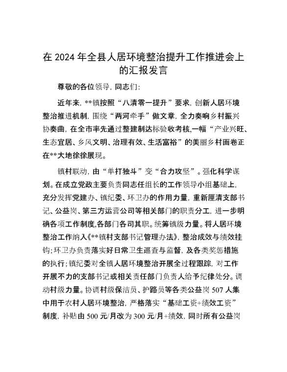 在2024年全县人居环境整治提升工作推进会上的汇报发言 2024-10-12 Word模板 92 购买前,请一定要先点击这里看看,欢迎持续关注,精彩模板每天推送 预览结束,本文件为word文档,一共3页,共1443字,请购买后,下载后查看 购买前,请一定要先点击这里看看,欢迎持续关注,精彩模板每天推送 资源下载下载价格29 RMBVIP免费升级VIP点击检测网盘有效后购买有任何充值和下载问题请加微信:xuexixuexi66 0 演讲发言