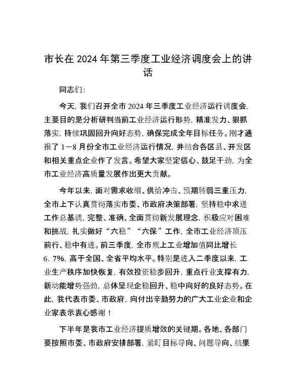 市长在2024年第三季度工业经济调度会上的讲话 2024-10-12 Word模板 96 购买前,请一定要先点击这里看看,欢迎持续关注,精彩模板每天推送 预览结束,本文件为word文档,一共5页,共2131字,请购买后,下载后查看 购买前,请一定要先点击这里看看,欢迎持续关注,精彩模板每天推送 资源下载下载价格29 RMBVIP免费升级VIP点击检测网盘有效后购买有任何充值和下载问题请加微信:xuexixuexi66 0 演讲发言
