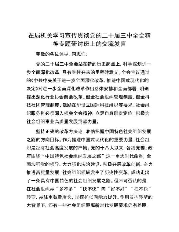 在局机关学习宣传贯彻党的二十届三中全会精神专题研讨班上的交流发言 2024-10-12 Word模板 128 购买前,请一定要先点击这里看看,欢迎持续关注,精彩模板每天推送 预览结束,本文件为word文档,一共5页,共2295字,请购买后,下载后查看 购买前,请一定要先点击这里看看,欢迎持续关注,精彩模板每天推送 资源下载下载价格29 RMBVIP免费升级VIP点击检测网盘有效后购买有任何充值和下载问题请加微信:xuexixuexi66 0 演讲发言