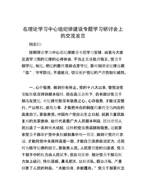 在理论学习中心组纪律建设专题学习研讨会上的交流发言 2024-10-12 Word模板 90 购买前,请一定要先点击这里看看,欢迎持续关注,精彩模板每天推送 预览结束,本文件为word文档,一共4页,共1651字,请购买后,下载后查看 购买前,请一定要先点击这里看看,欢迎持续关注,精彩模板每天推送 资源下载下载价格29 RMBVIP免费升级VIP点击检测网盘有效后购买有任何充值和下载问题请加微信:xuexixuexi66 0 演讲发言