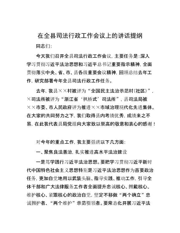 在全县司法行政工作会议上的讲话提纲 2024-10-12 Word模板 135 购买前,请一定要先点击这里看看,欢迎持续关注,精彩模板每天推送 预览结束,本文件为word文档,一共9页,共4167字,请购买后,下载后查看 购买前,请一定要先点击这里看看,欢迎持续关注,精彩模板每天推送 资源下载下载价格29 RMBVIP免费升级VIP点击检测网盘有效后购买有任何充值和下载问题请加微信:xuexixuexi66 0 演讲发言