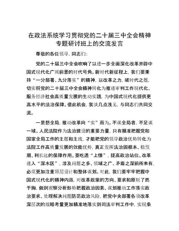 在政法系统学习贯彻党的二十届三中全会精神专题研讨班上的交流发言 2024-10-12 Word模板 116 购买前,请一定要先点击这里看看,欢迎持续关注,精彩模板每天推送 预览结束,本文件为word文档,一共5页,共2226字,请购买后,下载后查看 购买前,请一定要先点击这里看看,欢迎持续关注,精彩模板每天推送 资源下载下载价格29 RMBVIP免费升级VIP点击检测网盘有效后购买有任何充值和下载问题请加微信:xuexixuexi66 0 演讲发言