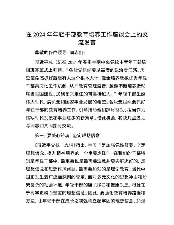 在2024年年轻干部教育培养工作座谈会上的交流发言 2024-10-12 Word模板 136 购买前,请一定要先点击这里看看,欢迎持续关注,精彩模板每天推送 预览结束,本文件为word文档,一共5页,共2417字,请购买后,下载后查看 购买前,请一定要先点击这里看看,欢迎持续关注,精彩模板每天推送 资源下载下载价格29 RMBVIP免费升级VIP点击检测网盘有效后购买有任何充值和下载问题请加微信:xuexixuexi66 0 演讲发言