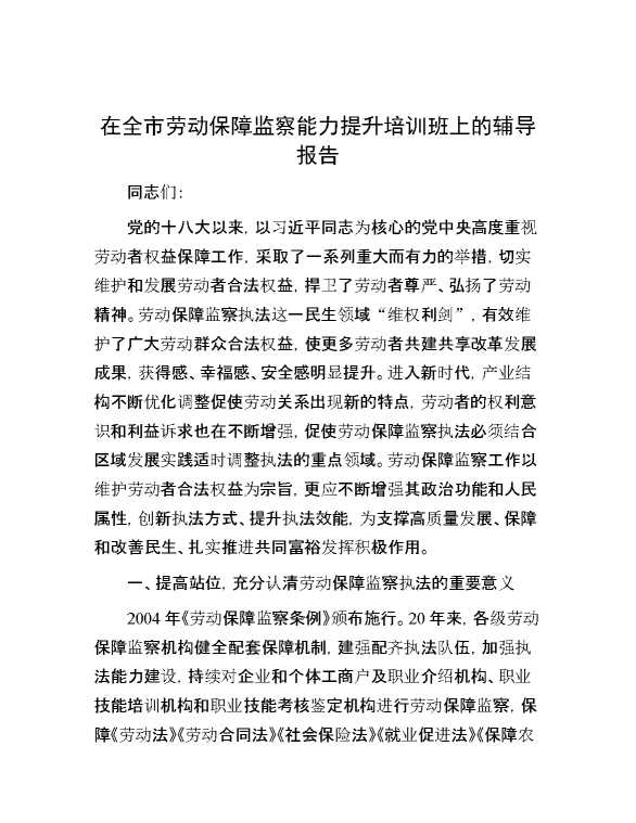 在全市劳动保障监察能力提升培训班上的辅导报告 2024-10-14 Word模板 69 购买前,请一定要先点击这里看看,欢迎持续关注,精彩模板每天推送 预览结束,本文件为word文档,一共13页,共6736字,请购买后,下载后查看 购买前,请一定要先点击这里看看,欢迎持续关注,精彩模板每天推送 资源下载下载价格29 RMBVIP免费升级VIP点击检测网盘有效后购买有任何充值和下载问题请加微信:xuexixuexi66 0 总结汇报