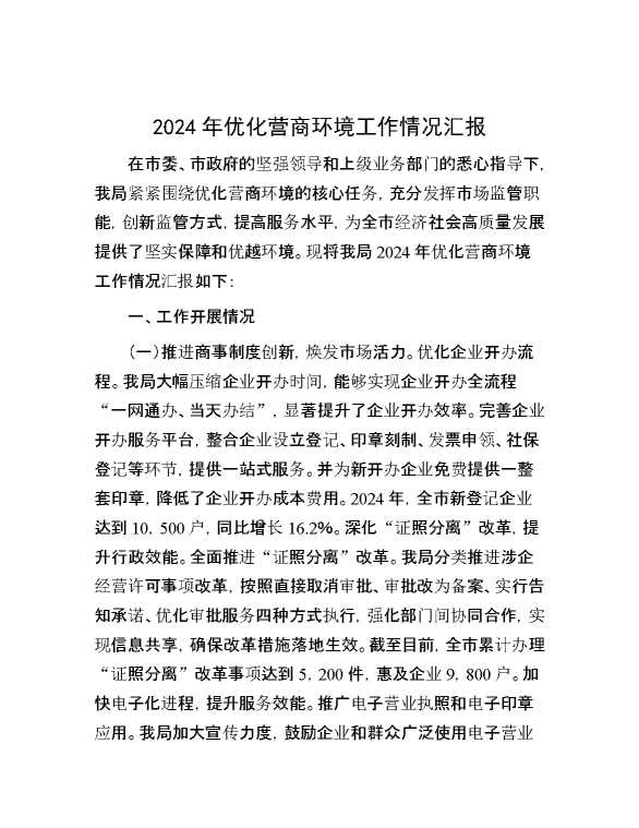 2024年优化营商环境工作情况汇报 2024-10-14 Word模板 65 购买前,请一定要先点击这里看看,欢迎持续关注,精彩模板每天推送 预览结束,本文件为word文档,一共7页,共3223字,请购买后,下载后查看 购买前,请一定要先点击这里看看,欢迎持续关注,精彩模板每天推送 资源下载下载价格29 RMBVIP免费升级VIP点击检测网盘有效后购买有任何充值和下载问题请加微信:xuexixuexi66 0 总结汇报