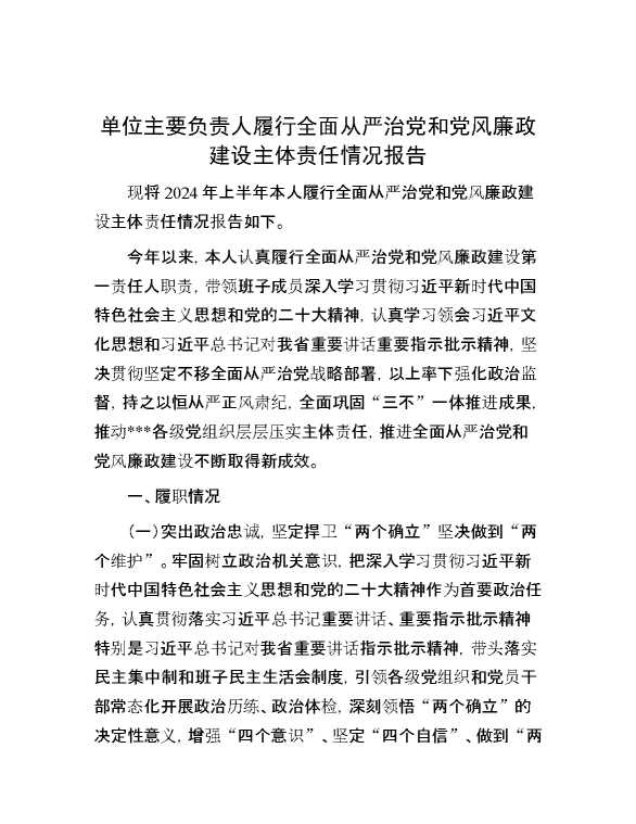 单位主要负责人履行全面从严治党和党风廉政建设主体责任情况报告 2024-10-14 Word模板 63 购买前,请一定要先点击这里看看,欢迎持续关注,精彩模板每天推送 预览结束,本文件为word文档,一共6页,共2633字,请购买后,下载后查看 购买前,请一定要先点击这里看看,欢迎持续关注,精彩模板每天推送 资源下载下载价格29 RMBVIP免费升级VIP点击检测网盘有效后购买有任何充值和下载问题请加微信:xuexixuexi66 0 总结汇报