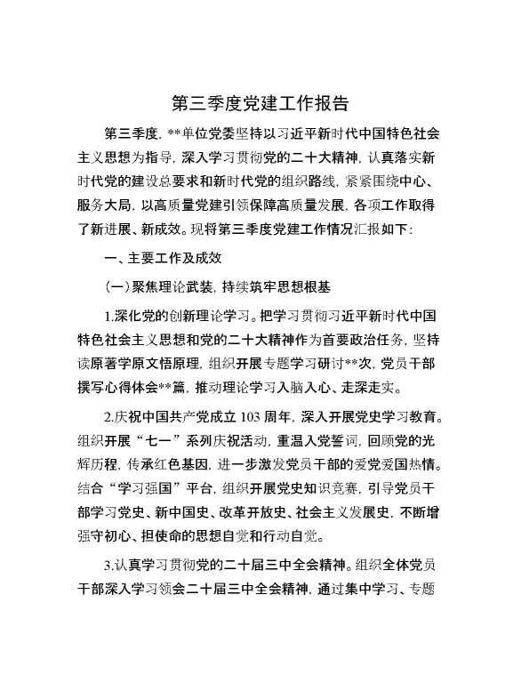 第三季度党建工作报告 2024-10-14 Word模板 65 购买前,请一定要先点击这里看看,欢迎持续关注,精彩模板每天推送 预览结束,本文件为word文档,一共5页,共1957字,请购买后,下载后查看 购买前,请一定要先点击这里看看,欢迎持续关注,精彩模板每天推送 资源下载下载价格29 RMBVIP免费升级VIP点击检测网盘有效后购买有任何充值和下载问题请加微信:xuexixuexi66 0 总结汇报
