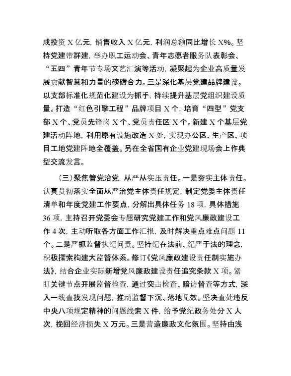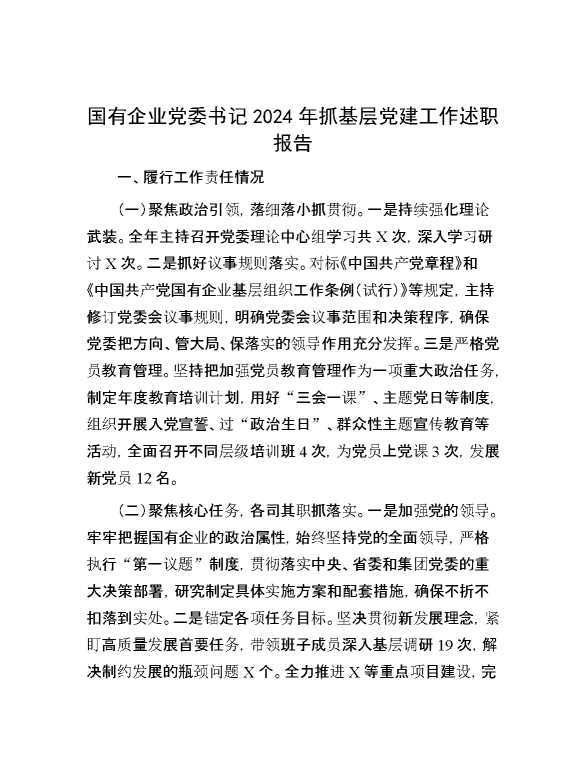 国有企业党委书记2024年抓基层党建工作述职报告 2024-10-14 Word模板 63 购买前,请一定要先点击这里看看,欢迎持续关注,精彩模板每天推送 预览结束,本文件为word文档,一共7页,共3144字,请购买后,下载后查看 购买前,请一定要先点击这里看看,欢迎持续关注,精彩模板每天推送 资源下载下载价格29 RMBVIP免费升级VIP点击检测网盘有效后购买有任何充值和下载问题请加微信:xuexixuexi66 0 总结汇报