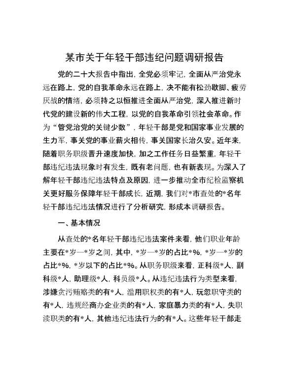 某市关于年轻干部违纪问题调研报告 2024-10-14 Word模板 65 购买前,请一定要先点击这里看看,欢迎持续关注,精彩模板每天推送 预览结束,本文件为word文档,一共7页,共3140字,请购买后,下载后查看 购买前,请一定要先点击这里看看,欢迎持续关注,精彩模板每天推送 资源下载下载价格29 RMBVIP免费升级VIP点击检测网盘有效后购买有任何充值和下载问题请加微信:xuexixuexi66 0 总结汇报