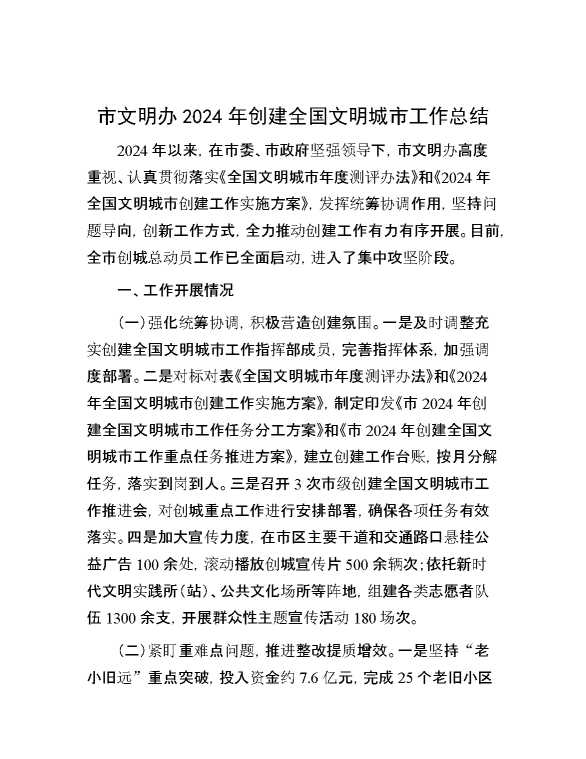 市文明办2024年创建全国文明城市工作总结 2024-10-15 Word模板 72 购买前,请一定要先点击这里看看,欢迎持续关注,精彩模板每天推送 预览结束,本文件为word文档,一共6页,共2929字,请购买后,下载后查看 购买前,请一定要先点击这里看看,欢迎持续关注,精彩模板每天推送 资源下载下载价格29 RMBVIP免费升级VIP点击检测网盘有效后购买有任何充值和下载问题请加微信:xuexixuexi66 0 总结汇报